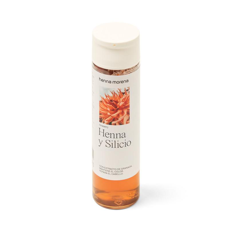 El Champú de Henna y Silicio repara y aporta fuerza al cabello, favorece su crecimiento y mantiene el color en cabellos teñidos.